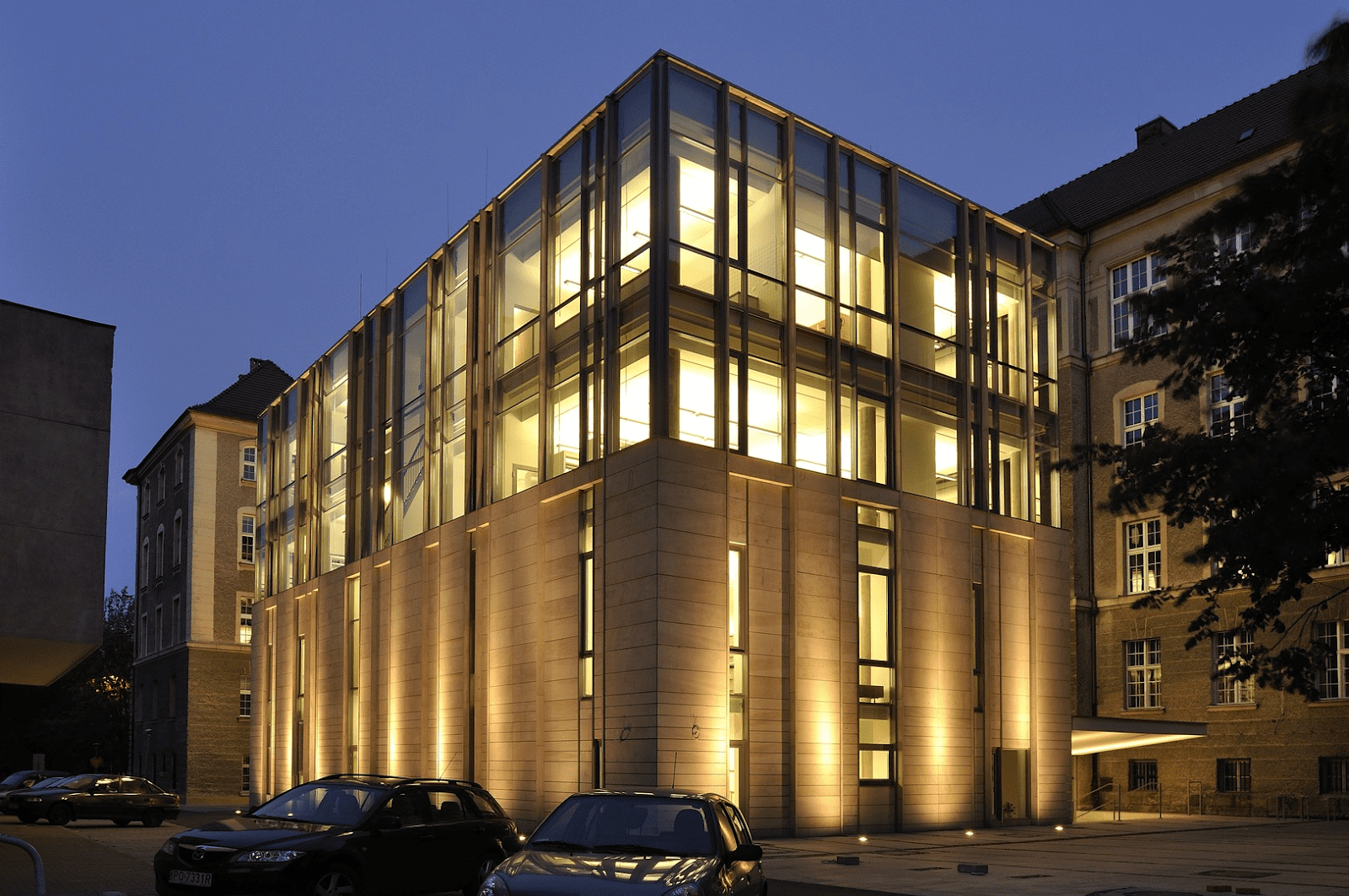 Бібліотека Університету імені Адама Міцкевича розташована в самому серці Познані. Цю будівлю проєктували як продовження «Collegium Maius». Поруч із нею можна побачити Познанський оперний театр і Прусський імператорський замок.